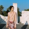 - Casual stripe print on satin high-waist skirt by Sabina Musayev.