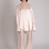 Embroidered chiffon halter neck top with thin straps that cross at the back.
