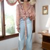 DescriptionPrinted pleated knit top with draped details, a-symmetrical cut and puffed shoulders.