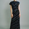 Diagonal viscose blend strapless midi dress with a twisted front detail, cutout, and back lacing with detachable straps. A pencil skirt with gathering details, front slit, and invisible zipper at the back.