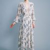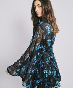 Floral print on crinkled chiffon mini dress featuring a V neckline with twist front knot detail, and long wide sleeves.