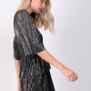 Floral print on crinkled chiffon mini dress featuring a V neckline with twist front knot detail, and long wide sleeves.