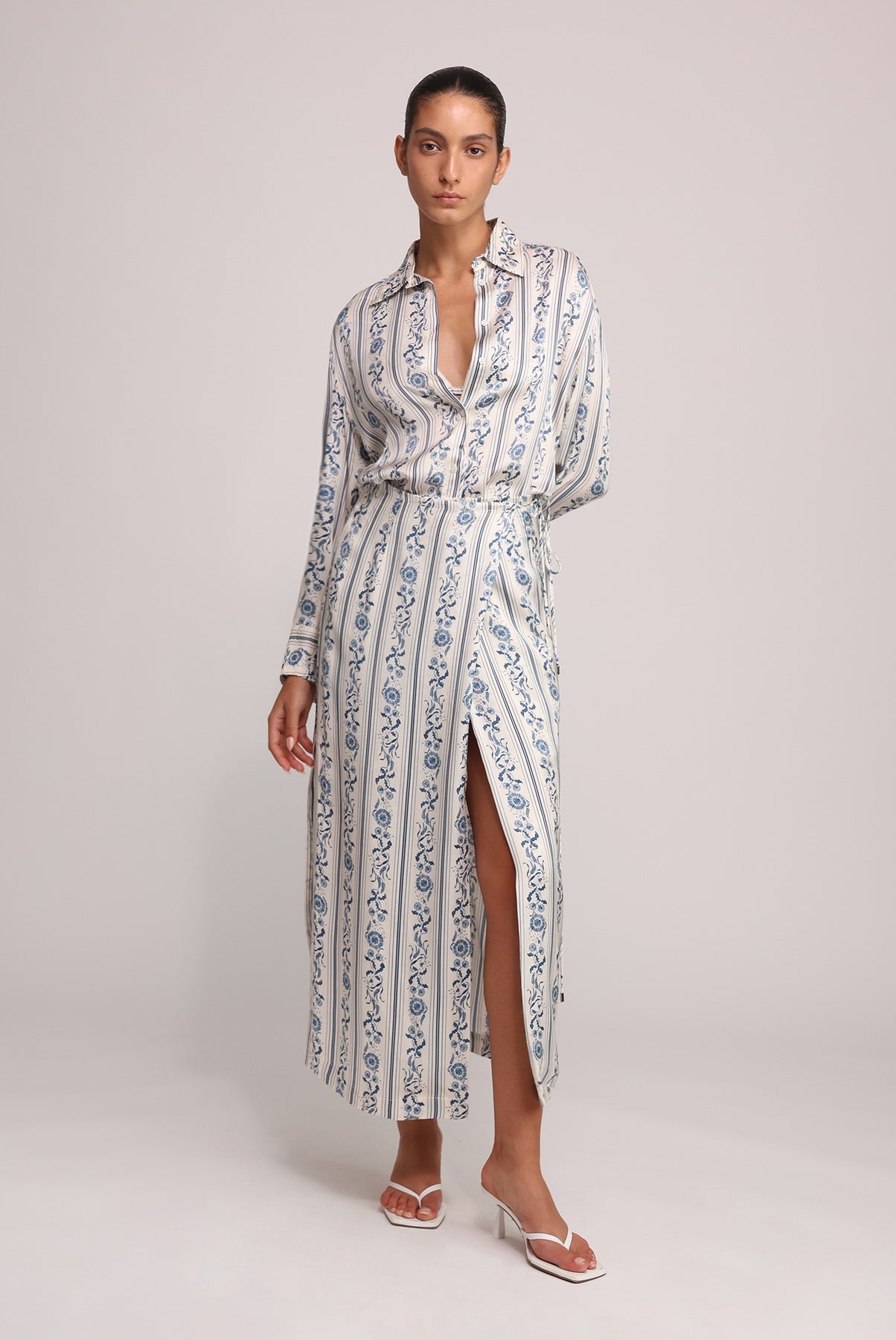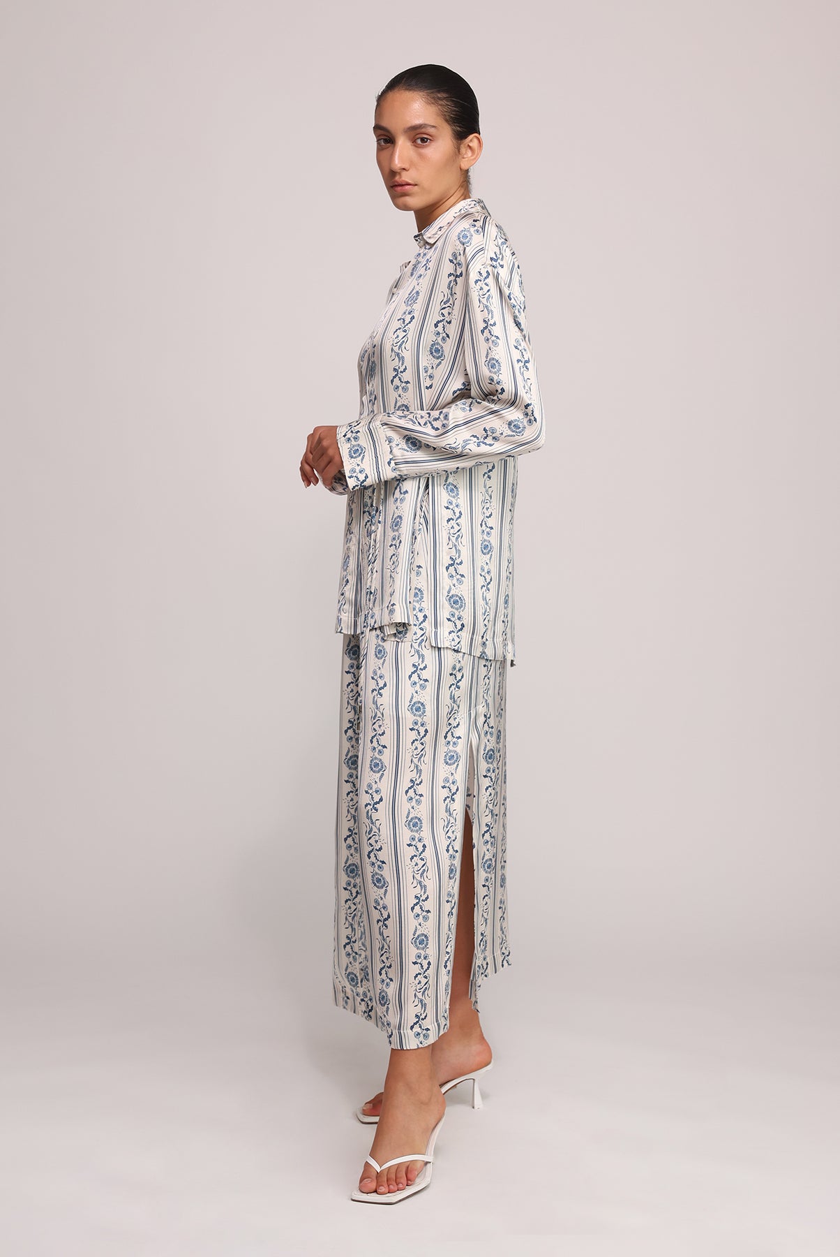 - Casual stripe print on satin high-waist skirt by Sabina Musayev.