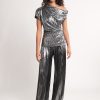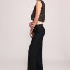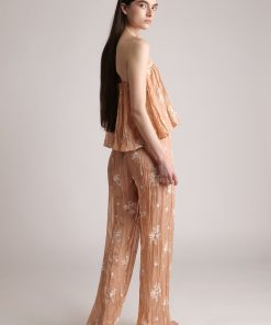 Pleated chiffon with embroidery wide leg pants with adjustable elastic waistband.
