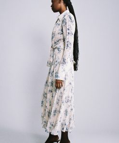 Pleated chiffon with embroidery wide leg pants with adjustable elastic waistband.