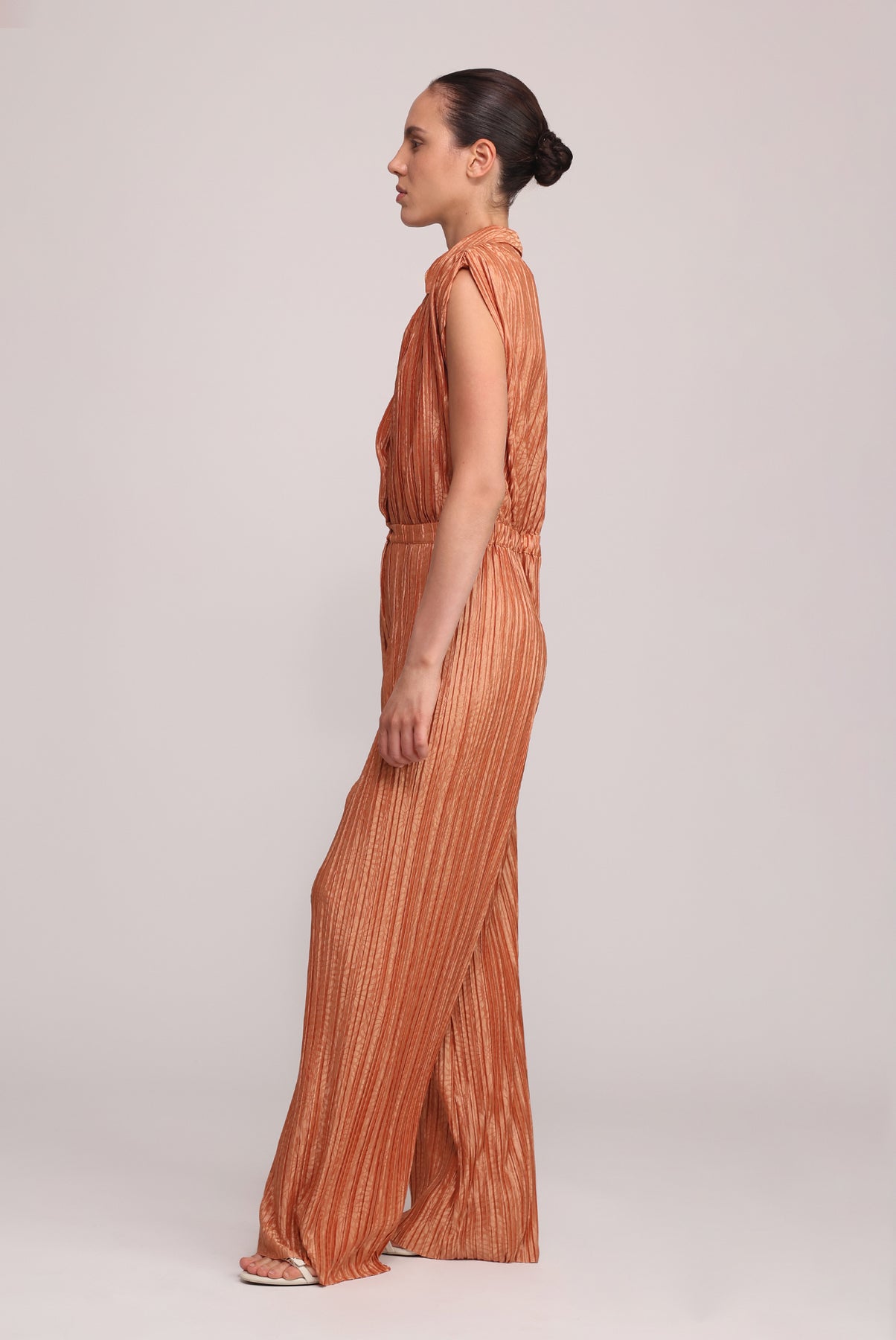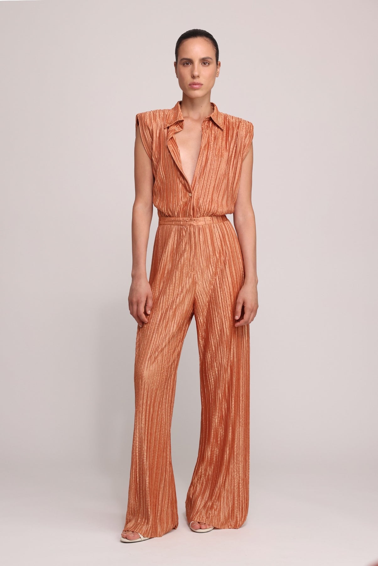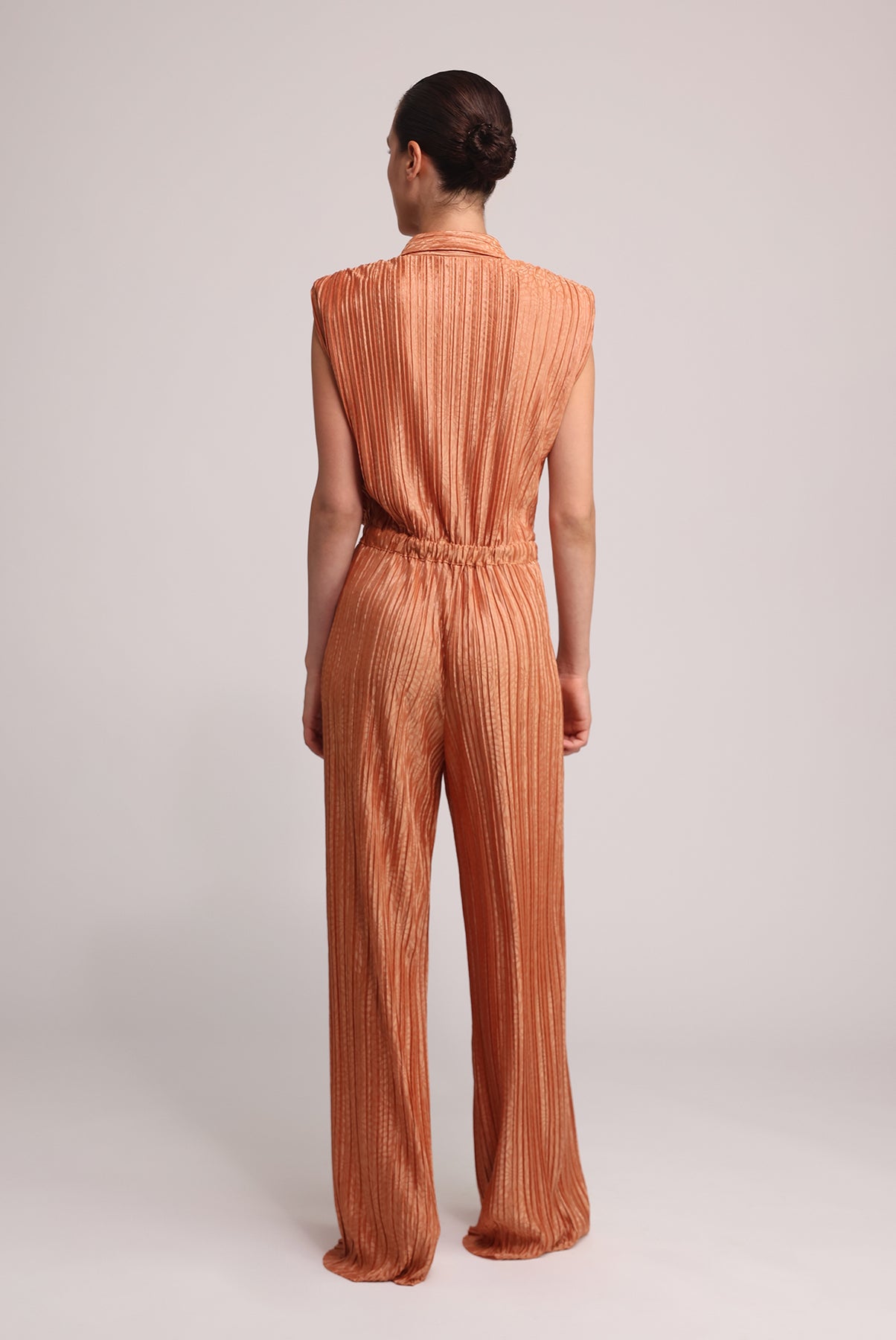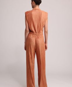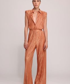 - Evening floral embossed pleated knit jumpsuit with collar by Sabina Musayev.