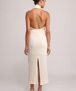 - Casual crinkled knit halter neck midi dress by Sabina Musayev.