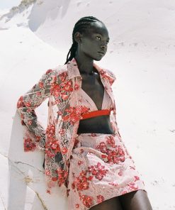 Floral sequin on soltice lace bra with buckle fastening at the back.
