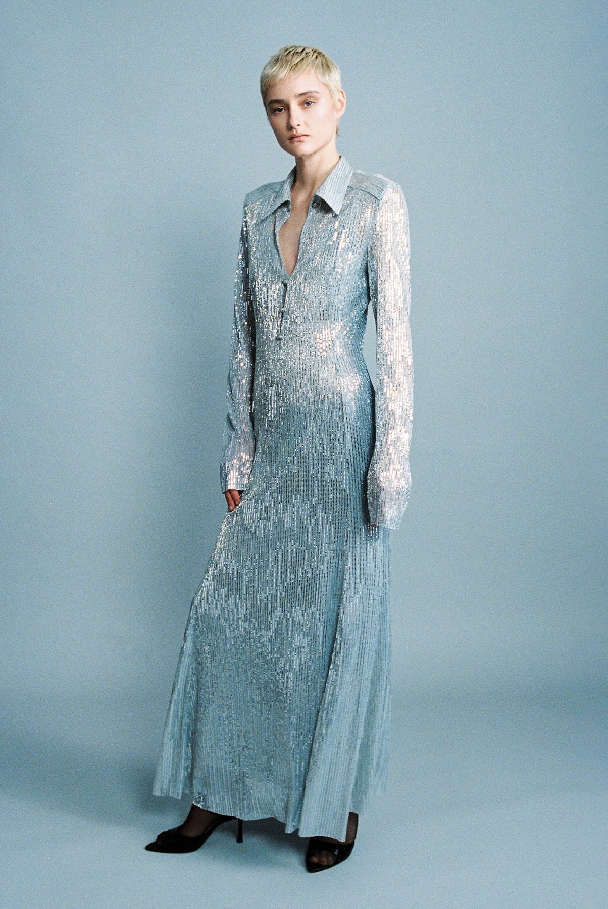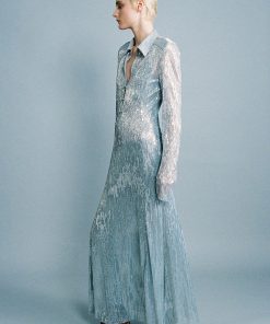 Ray lurex Collared midi dress featuring long sleeves.