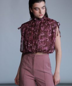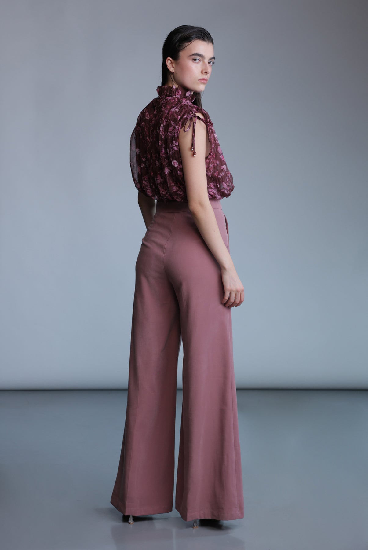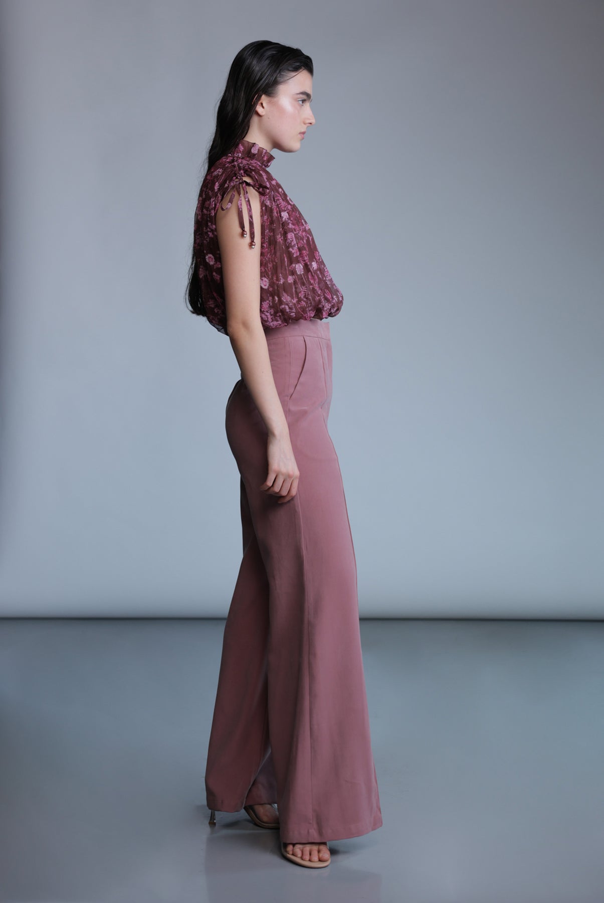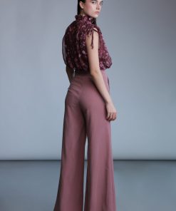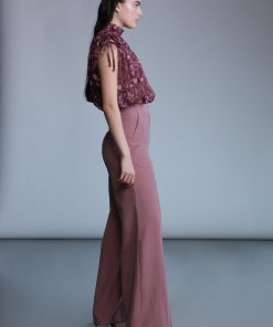 Diagonal viscose blend wide leg featuring side pockets, and button fastening on the front.