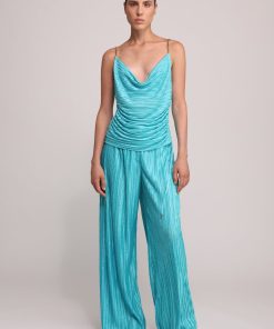 - Evening floral embossed pleated knit high waist pants by Sabina Musayev.