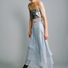 Pleated knit high-waisted fitted mini skirt withgathering at sides, crossed hem, and invisible zipper atcenter back.