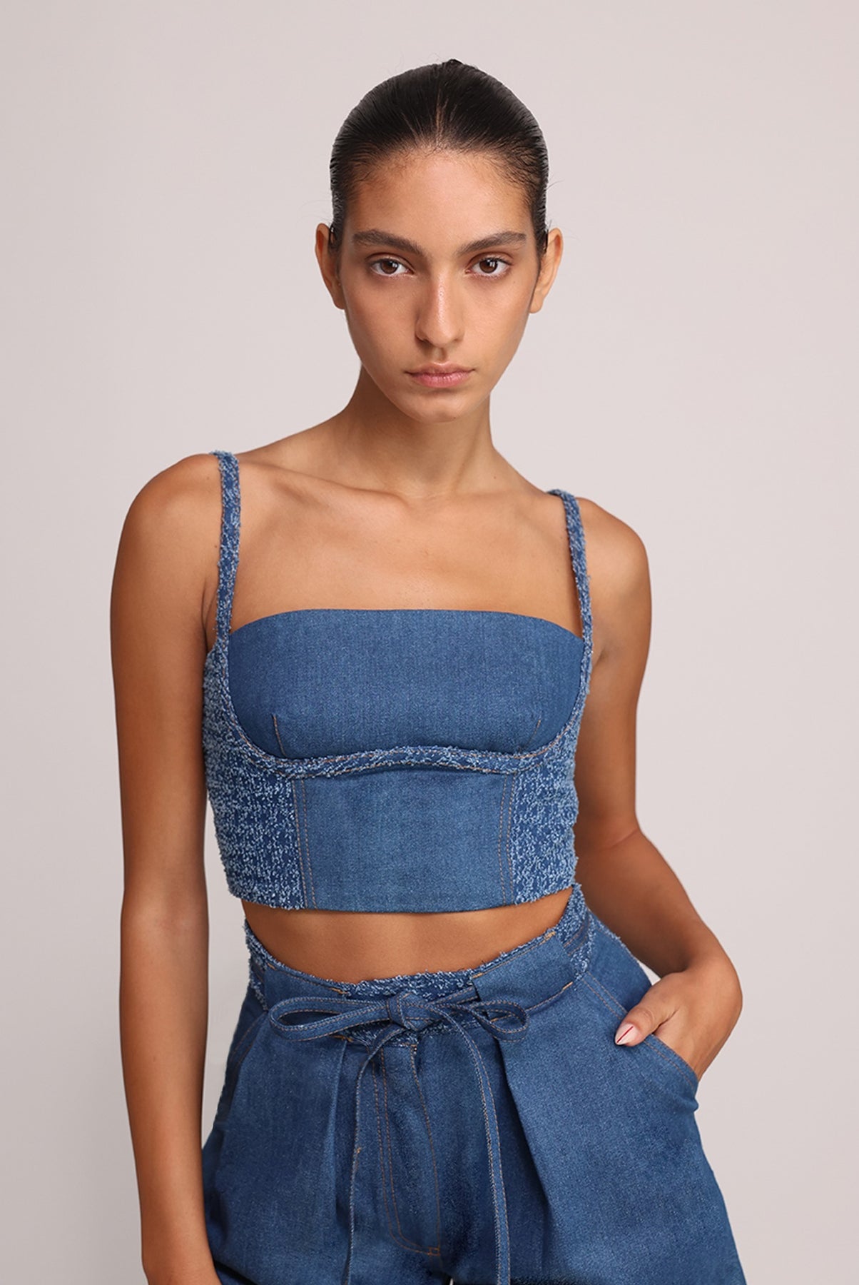 - Casual denim top by Sabina Musayev.