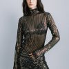 Loose-fitting sequin top featuring a round collar, short sleeves and open back with tie details.
